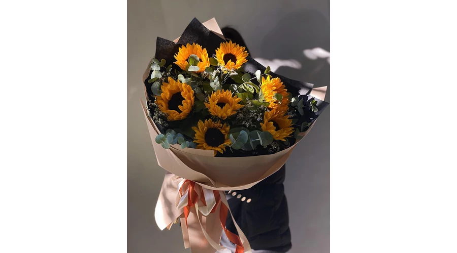 Napraforgó csokor, Friss/szépség garancia mellett rendelheted meg tőlünk Budapesti szállítással! Alkalomhoz illő üdvözlőkártya ingyenes! Ha szeretnél üdvözlőkártyát, kérjük, küldd el a ráírandó szöveget vagy aláírást.